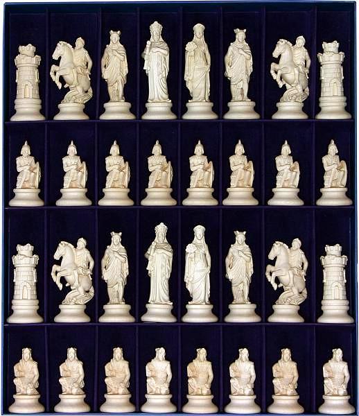 Jeu d’Echecs en Métal Plaqué Or et Argent – Style Colonne Romaine